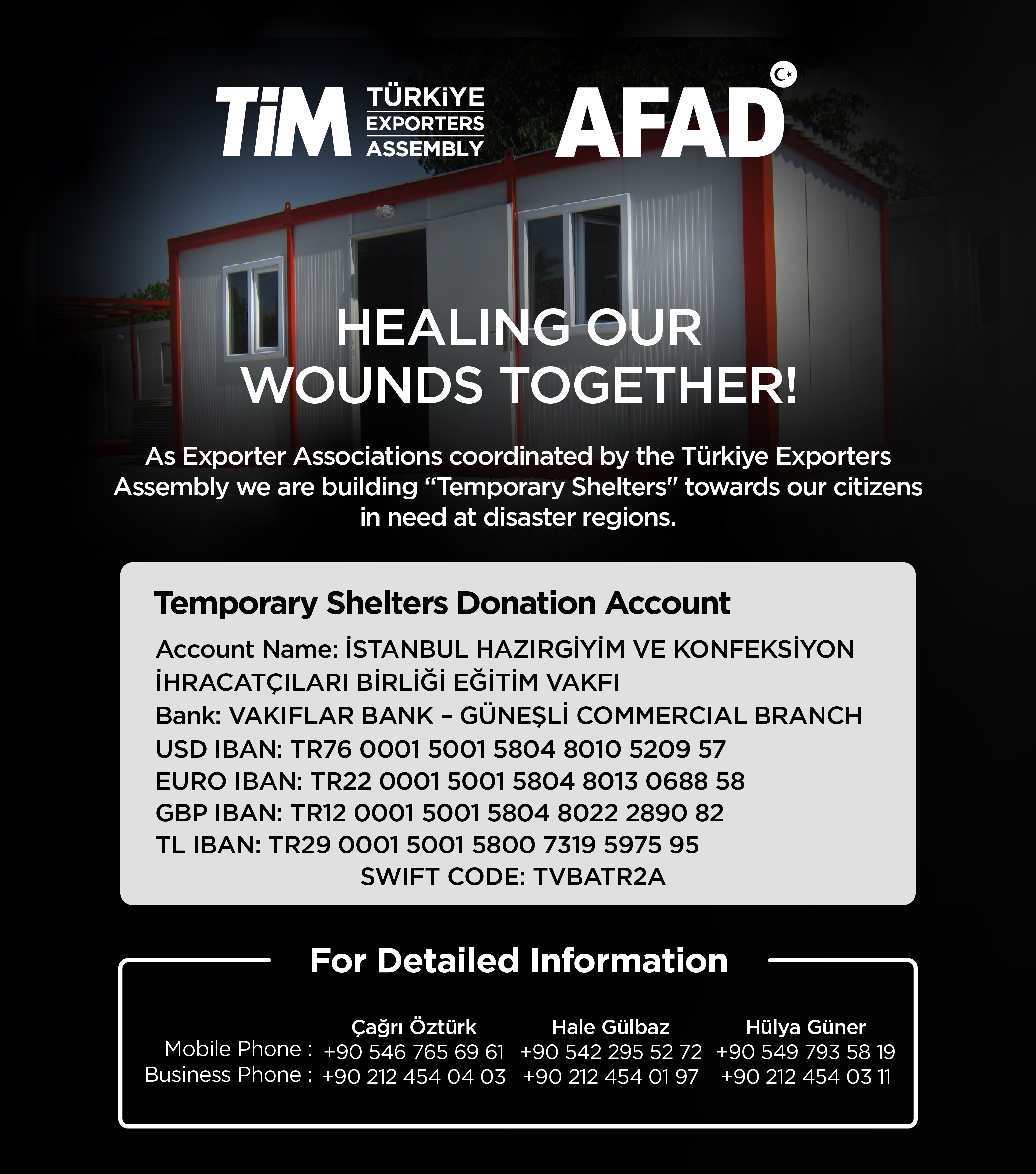 We are building temporary shelters for residents in the earthquake affected area. Donations can be made through the information in the visual.